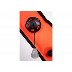 Apeks SMB to nie tylko idealna bojka do znakowania powierzchni, ale może być również używana jako pływak awaryjny. Mosiężne oczka na końcach pływaka pozwalają nurkowi złożyć jednostkę i przymocować ją do pływającej pętli za pomocą zatrzasków śrubowych.