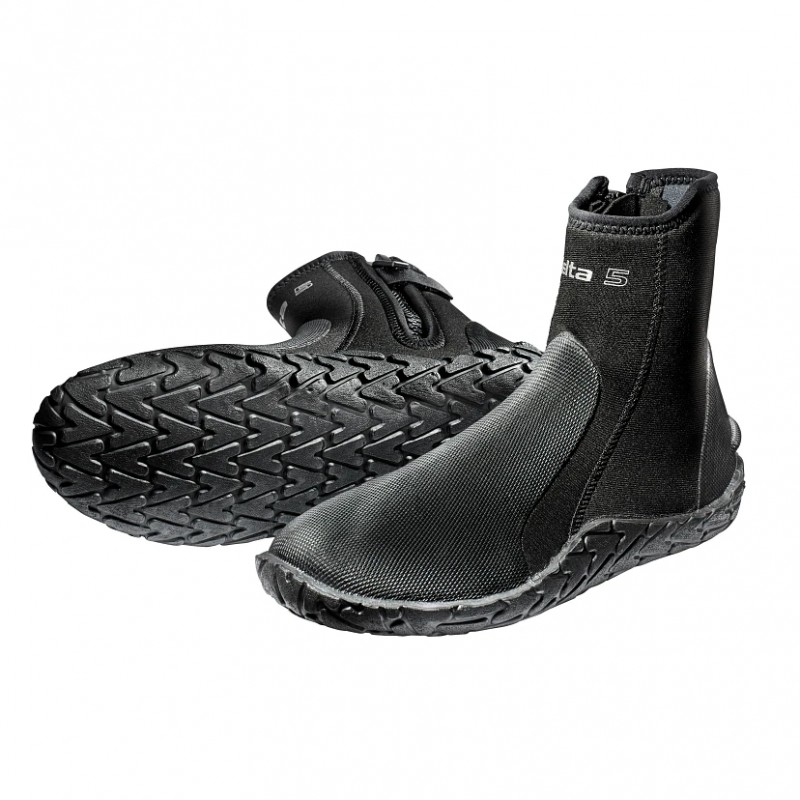 Popularny but nurkowy Delta 5 mm ma solidną, ale elastyczną podeszwę zewnętrzną i gumową ochronę, a jednocześnie jest bardzo lekki dla stopy. Zmieniona średnica kostki i wyprofilowana góra poprawiają dopasowanie i ułatwiają przesuwanie zamka YKK w górę i w dół. Pełny krój zapewnia wygodne dopasowanie bez skurczów, nawet dla szerokich stóp. Wzmocnienie na górze stopy amortyzuje krawędź kieszeni na płetwy. Antypoślizgowy bieżnik buta nie pozostawia śladów, co jest cechą, którą właściciele łodzi zawsze doceniają. Oferując mnóstwo komfortu, następnym razem, gdy będziesz nurkować w zimnej wodzie lub przemierzać skaliste wybrzeża, będziesz zadowolony, że masz na sobie swoje Deltas.