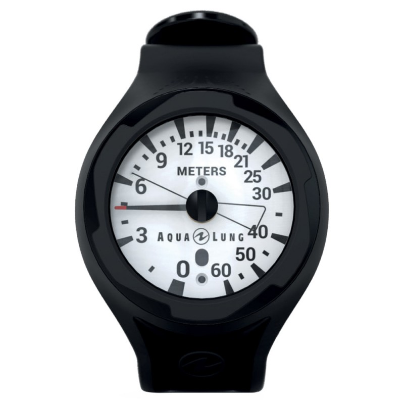 Głębokościomierz Aqualung, ze specjalnie zaprojektowaną skalą głębokości i wskaźnikiem luminescencyjnym pozwala na łatwiejsze czytanie. Maksymalna głębokość 60 metrów.