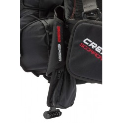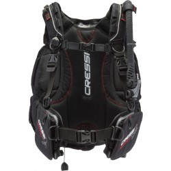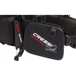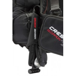 Scorpion to imponująco lekka, montowana z tyłu kamizelka o dużej wyporności, anatomicznie zaprojektowana z myślą o maksymalnym komforcie i łatwości noszenia. Jego głównymi cechami są odpinane szelki i komora powietrzna. Zamontowana z tyłu komora powietrzna nie koliduje ani z głównym podwodnym elementem, ani z paskami regulacyjnymi, nawet gdy jest maksymalnie napompowana: oznacza to dodatkową swobodę ruchu i pływalność dla nurka. Specjalny pasek kompresyjny z komorą powietrzną gwarantuje wyjątkowo szybką deflację i kontrolę głośności. Ultralekka, półsztywna uprząż zapewnia optymalną stabilność i wysoki komfort dzięki siatce powietrznej. Zintegrowany system balastowy Cressi z płaską blokadą sprawia, że otwieranie kieszeni jest wyjątkowo łatwe