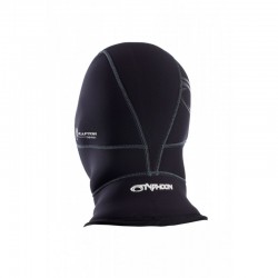 -Kaptur bez kryzy, prosty. Idealnie współgra z neoprenową kryzą suchego skafandra albo mokra pianką z wyższą stójką, czyli wszędzie tam gdzie nie trzeba dodatkowego docieplenia, bo i tak jest ciepło.