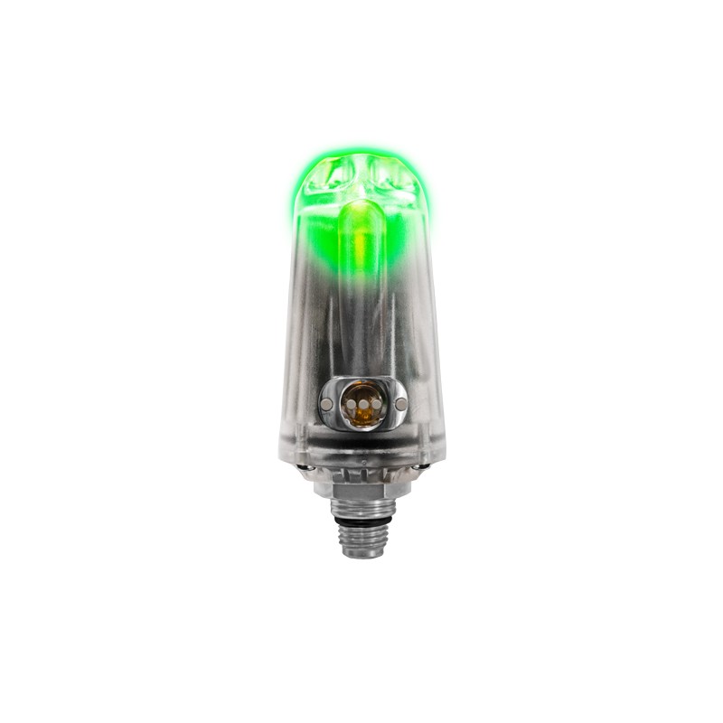 Najnowocześniejszy nadajnik bezprzewodowy, który miga w kolorze zielonym, żółtym lub czerwonym w zależności od ciśnienia w butli podczas całego nurkowania.