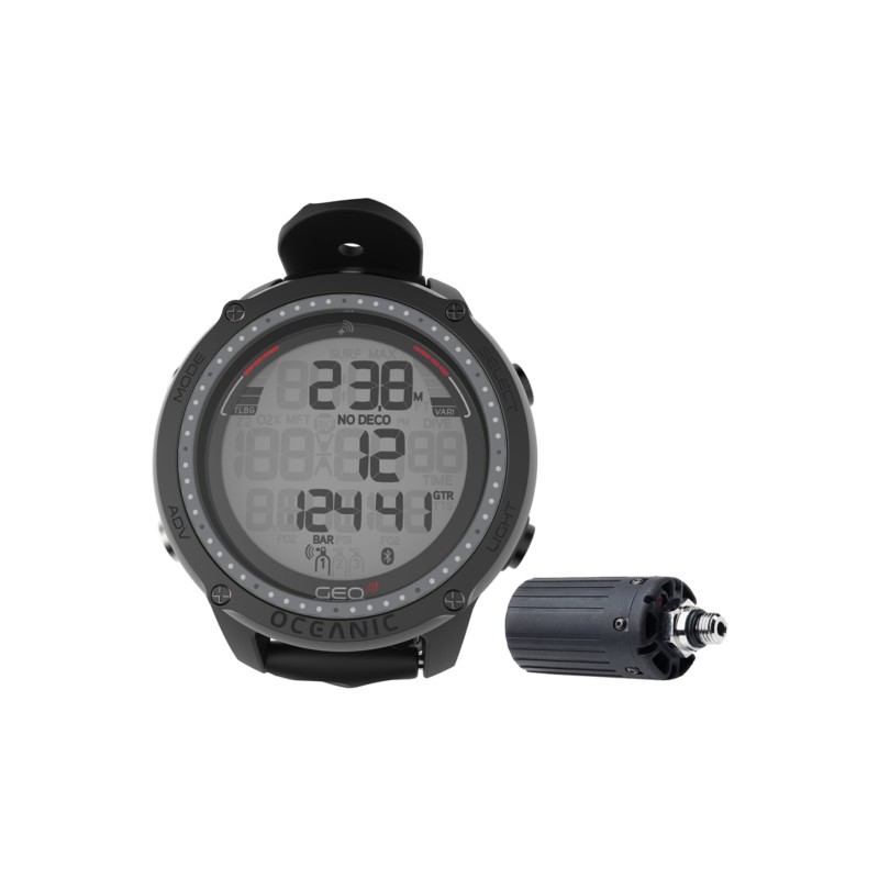 Geo Air posiada możliwość bezprzewodowego połączenia z transmiterem. Posiada duży, czytelny wyświetlacz z większymi wyraźniejszymi cyframi, opatentowany Oceanic Dual Al Algorytm ™, pięć opcjonalnych kolorowych pasków, oraz połączenie Bluetooth ze wszystkimi modelami smartfonów za pośrednictwem aplikacji DiverLog + (obsługiwanej również w języku Polskim).