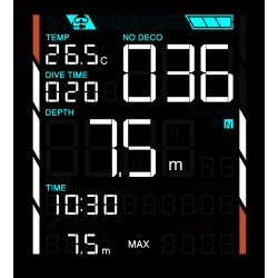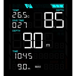 Informacje o nurkowaniu wyświetlane są z zadziwiającą wyrazistością, nawet na najgłębszych głębokościach i podczas nurkowań nocnych bez konieczności świecenia w nie latarką.