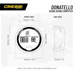 Donatello to komputer do nurkowania i freedivingu. Idealnie nadaje się do innych aktywności wodnych, dzięki możliwości dezaktywacji funkcji „nurkowania”, co pozwala uniknąć niepotrzebnych alarmów podczas snorkelingu lub pływania. Posiada wyświetlacz o wysokim kontraście. Wytrzymała obudowa ze stalowym przyciskiem jest wyposażona w ramkę, która podobnie jak zabezpieczenie jest wykonana z tworzywa sztucznego. Opór podwodny wynosi do 150 m. Dwukolorowa opaska na nadgarstek wykonana jest z gumy TPU i posiada sprzączkę ze stali nierdzewnej