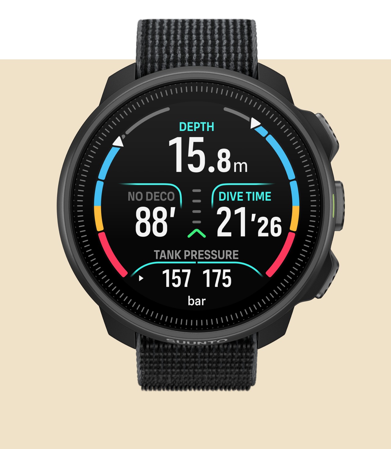 Wytrzymała, odporna na wysokie ciśnienie konstrukcja i jasny wyświetlacz AMOLED zapewniają dobrą widoczność i pewność podczas każdego nurkowania. Nowy elastyczny pasek tekstylny zapewnia najwyższy komfort i elastyczność, dostosowując się do każdego kombinezonu i warunków podczas nurkowania.