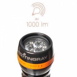 Latarka posiada trzy diody led Cree NG, które emitują światło o jasności 1300 lumenów i chłodnej-białej temperaturze barwowej.