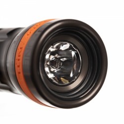 Ta niezwykle wytrzymała i wodoodporna latarka zapasowa jest niezwykle łatwa w obsłudze. Użytkownik włącza i wyłącza ją za pomocą zaledwie ćwierć obrotu głowicy.