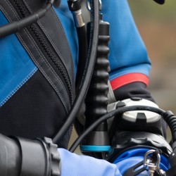 LED ONE łatwo mieści się w kieszeni skafandra lub jacketu’u (maks. Długość: 197 mm, maks. szerokość: 41 mm) . Może być także z łatwością przypięta do uprzęży nurkowej.