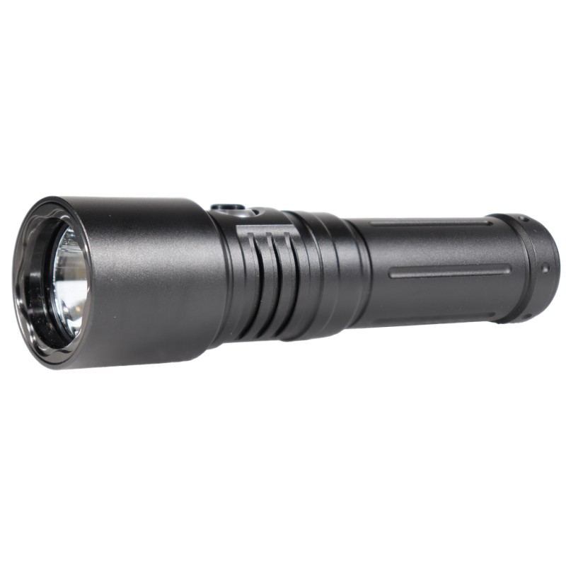 Najnowsza innowacyjna mała latarka nurkowa „SNAKE” z kątem świecenia 6° oraz z wbudowanym zielonym laserowym. Bardzo mała i niewiarygodnie poręczna lampa ma nowoczesną mono LED o doskonałej wydajności chipa 2000 lumenów. Posiada 2 poziomy świecenia na 100% lub 25% mocy. Bateria litowo-jonowa pozwala na czas palenia do 7 godzin. Dzięki nowoczesnej ochronie przed przegrzaniem lampa może być również używana bez chłodzenia wodą.