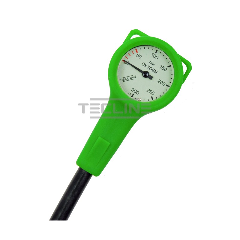 Manometr TecLine O2 300 BAR, zielona obudowa, wąż 15 cm