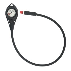 Manometr Aqualung pokazuje zarówno pozostałe ciśnienie powietrza, jak i temperaturę na jednym, łatwym do odczytania wyświetlaczu.