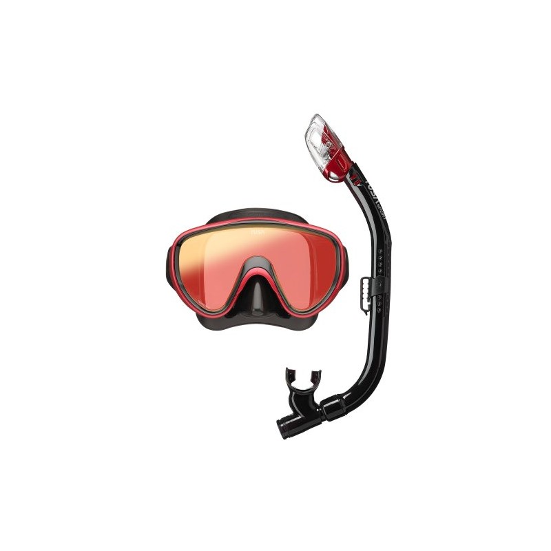 Kompaktowa, niskoprofilowa jednoszybowa maska do nurkowania dla dorosłych UM16, do małych i średnich twarzy, oraz fajka UN0301.