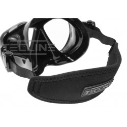 Nowoczesna maska zapewniająca duży kąt widzenia. Miękki i elastyczny silikon doskonale dopasowujący się do twarzy. Neoprenowy pasek mocujący maskę, dający użytkownikowi możliwość bardzo łatwej regulacji. Hartowane szkło maski wykonane w technologii AntiFog. Stosunkowo niewielka pojemność wewnętrzna maski.