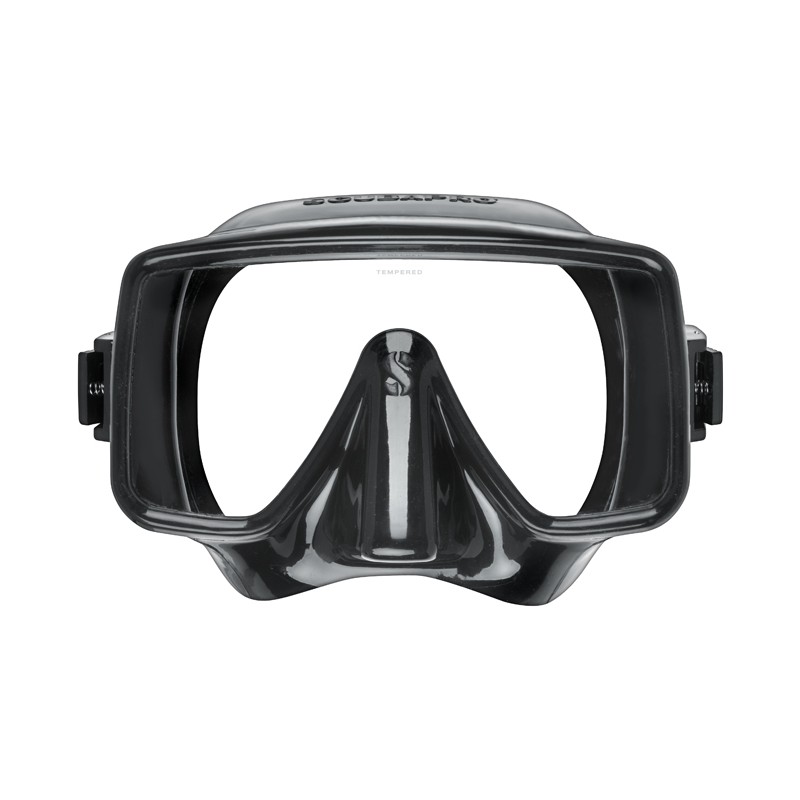 FRAMELESS firmy SCUBAPRO to oryginalna bezramkowa maska do nurkowania. Jej charakterystyczny prostokątny kształt pojedynczego szkła jest klasyczny, zapewniając doskonałe pole widzenia zarówno na obwodzie, jak i na wprost. Miękka silikonowa spódnica jest wygodna i trwała, a dwustronna uszczelka dobrze przylega do skóry. System klamer jest łatwy w użyciu i umożliwia szybką regulację. Klamry mocowane są do elastycznych zakładek na spódnicy; optymalizuje to kąt paska podczas dopasowywania. Szeroki pas rozkłada obciążenie na tył głowy, znacznie zwiększając komfort. Po dziesięcioleciach na scenie nurkowej Scubapro FRAMELESS nadal jest jedną z najczęściej wybieranych masek wśród profesjonalnych nurków na całym świecie.