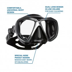 Gwiezdna podwójna soczewka SPECTRA oferuje szeroki widok i wygodne uszczelnienie blokujące wodę, a także ma konstrukcję o małej objętości dla łatwego czyszczenia. Zaprojektowana tak, aby pasowała do różnych kształtów twarzy, SPECTRA wykorzystuje inteligentną, podwójnie uszczelnioną silikonową spódnicę dla optymalnego komfortu. Oprócz wygody, system klamry i paska SPECTRA jest łatwy w użyciu. Klamry z przyciskiem, które mocują się do spódnicy, łatwo się regulują, optymalizują kąt paska i zakres ruchu, aby uzyskać idealne dopasowanie, a także umożliwiają złożenie maski na płasko w celu łatwego pakowania. Spódnice maski są dostępne zarówno w kolorze przezroczystym, jak i czarnym, a ekskluzywny proces malowania i wybór kolorów zamieniają SPECTRA w stylowe okulary, a także wygodną, niezawodną maskę do nurkowania.