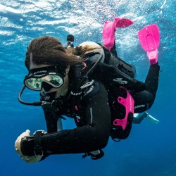 Solo to nowoczesna maska z jednym szkłem, która oferuje panoramiczne pole widzenia o małej objętości w opływowym kształcie. Podwójnie uszczelniona silikonowa spódnica dopasowuje się do twarzy, tworząc wygodne, wodoszczelne uszczelnienie. Klamry z elastycznymi mocowaniami na spódnicy umożliwiają łatwe poprowadzenie antypoślizgowego paska, aby uzyskać idealne dopasowanie. Ta maska jest ulubioną maską wśród nurków rekreacyjnych.