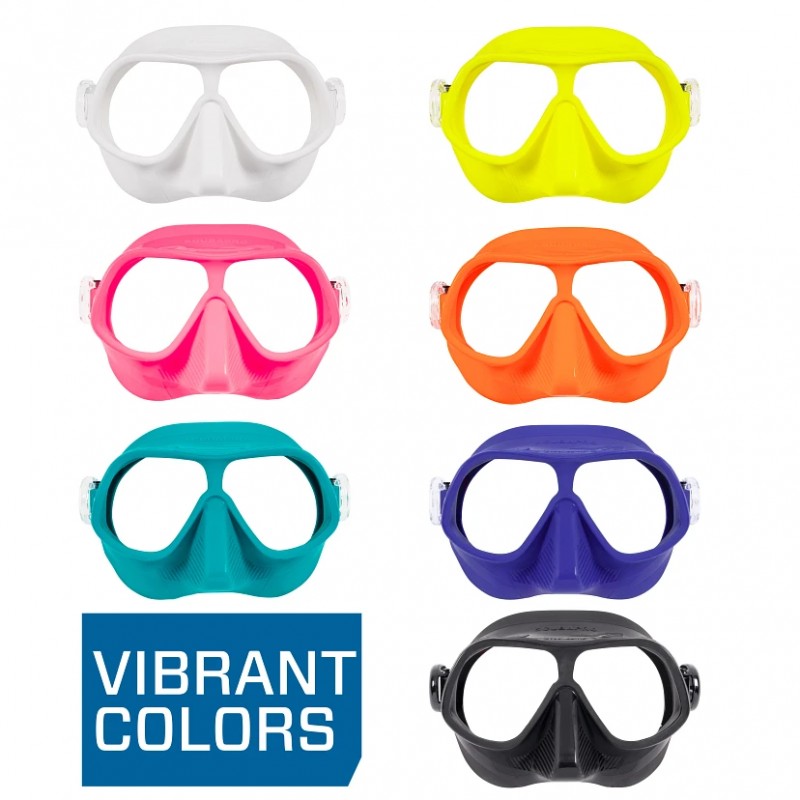 Maska z dwoma szkłami i najmniejszą mozliwą pojemnością wewnętrzną dla minimalnego zużycia powietrza. Bardzo ceniona przez nurków freediving,u.*
