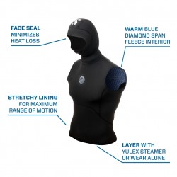 Noszona z oVERALL lub shorty SCUBAPRO, wygodna kamizelka z kapturem 5/3 mm znacznie zwiększa ochronę termiczną w okolicy tułowia. Kamizelka zapewnia 5 mm dodatkowej ochrony termicznej na przednich i tylnych panelach z 3 mm panelami bocznymi, aby zwiększyć zakres ruchu. Aby ogrzać głowę, przymocowany kaptur zapewnia 3 mm ochrony termicznej i ma 2 mm uszczelnienie twarzy, aby pomóc uszczelnić przedostawanie się wody i zminimalizować utratę ciepła.