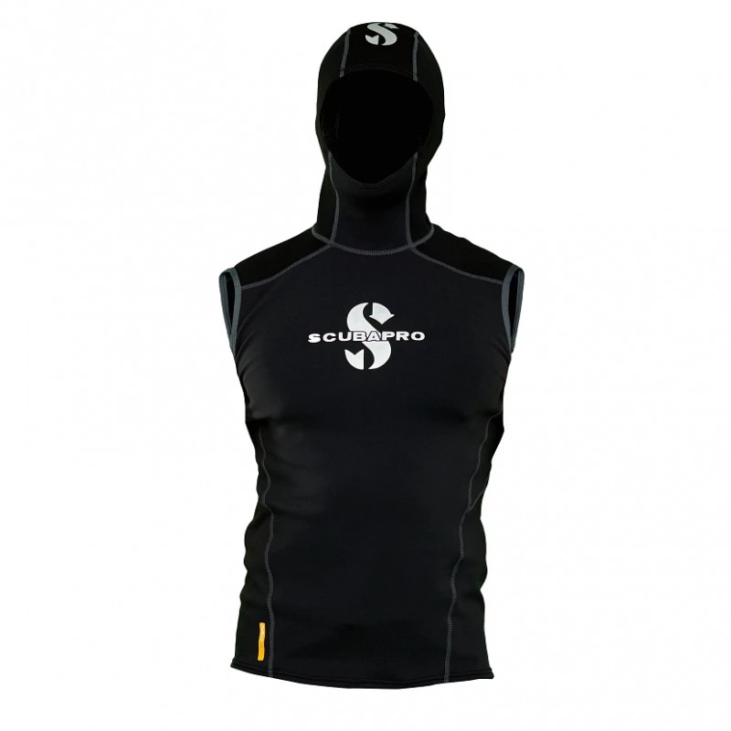 SCUBAPRO zaktualizowało swoją popularną linię HYBRID, która obejmuje termiczny top z długim rękawem, szorty cargo i bezrękawnik z kapturem. Ultrawygodna mieszanka neoprenu/nylonu w kamizelce HYBRID HOODED VEST świetnie chroni tułów i głowę, dwa krytyczne obszary minimalizujące utratę ciepła, zapewniając komfort, ciepło i ochronę tam, gdzie jest to najbardziej potrzebne. Na spodniej stronie paneli nylonowych mikropluszowe wnętrze sprawia, że kamizelka jest ciepła i przytulna. Ta tkanina polarowa pochłania mniej wody, co zatrzymuje ciepło przy ciele, zwiększając ogólne ciepło. Ponadto szybko schnie. Tę kamizelkę z kapturem można nosić samodzielnie lub nakładać na termiczny rash guard z długim rękawem, aby zwiększyć ciepło i ochronę.