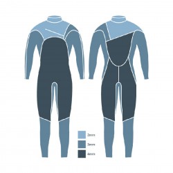 Minimalistyczny design zawiera mini zamek na klatce piersiowej, eliminując potrzebę tylnego zamka błyskawicznego, radykalnie poprawiając mobilność i minimalizując możliwość dostania się wody do kombinezonu przez zęby zamka.