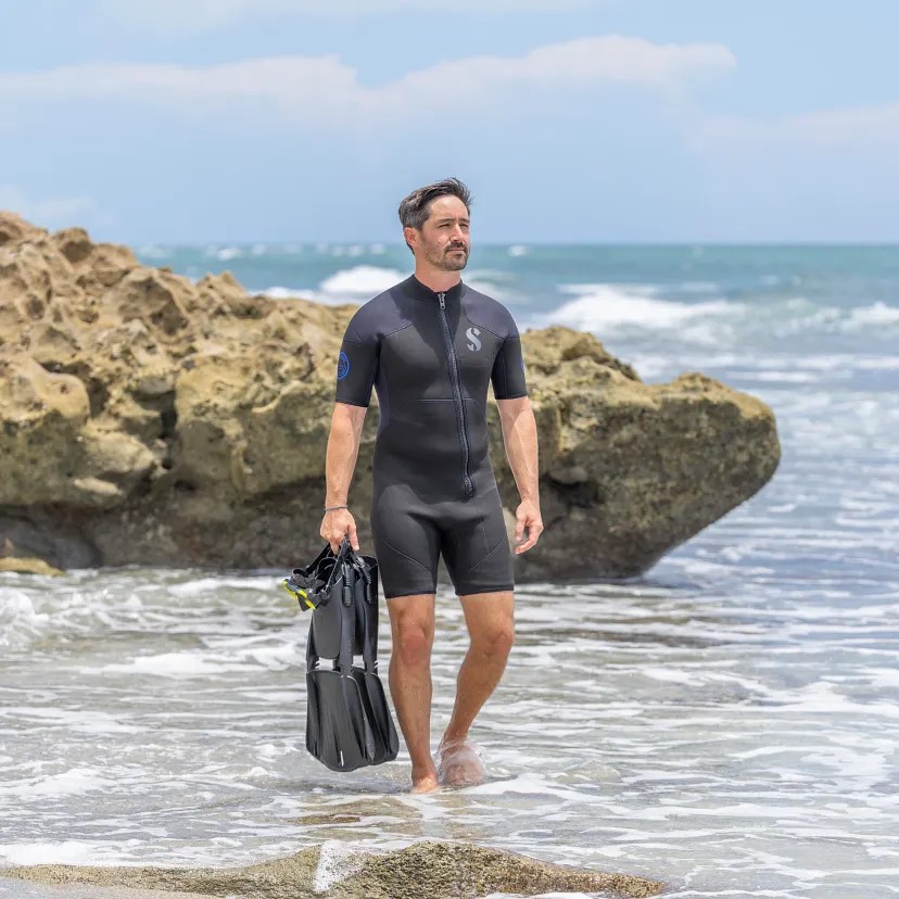 Wykonany z mocnego, ale rozciągliwego neoprenu X-Foam z wytrzymałą, dwustronną podszewką z poliestru, odporną na promieniowanie UV i chlor, ten krótki kombinezon o grubości 2,5 mm idealnie nadaje się do nurkowania w tropikach lub treningu na basenie. Materiał antyprzecięciowy na ramionach i siedzisku chroni przed otarciami, a pasy BCD i antypoślizgowe siedziska łodzi znacznie wydłużają żywotność krótkiego kombinezonu.