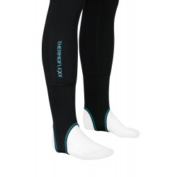 Spodnie ocieplacza posiadają otwory na p-valve. Zaprojektowana wysoka talia i szeroka nieuciskająca guma w pasie zapobiegają zsuwaniu się spodni podczas ubierania się. Nogawki posiadają cieńszą warstwę materiału poniżej kolan dzięki czemu po założeniu skarpet na łydkach nie powstaje uciążliwe zgrubienie materiału i nurek z łatwością może nałożyć suchy skafander. Specjalne „stopki” na dole spodni utrzymują nogawki we właściwym miejscu i zapewniają idealne dopasowanie materiału w kostkach. Rozwiązanie to zapobiega podciąganiu się nogawek do góry przy zakładaniu suchego skafandra.