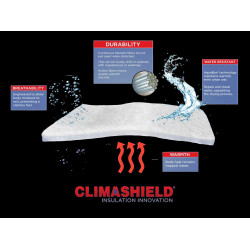 CLIMASHIELD 2Apex™ to unikalna izolacja z włókien ciągłych o przekroju rurkowym – „niezniszczalne ciepło” – jest lekka, bardzo ciepła, odporna na pranie i kompresję. Dzięki zaawansowanej technologii AquaBan™ zapewnia doskonałą wydajność cieplną nawet gdy jest mokra, przy czym nie utrudnia odprowadzania wilgoci od ciała.
