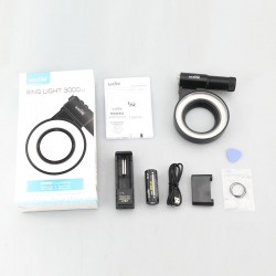 RingLight 3000 V2 jest wyposażona w mocowanie z gwintem M67 lub mocowanie kulowe, z opcjonalnym adapterem redukującym z 67mm na 52mm. Maksymalna moc światła LED wynosi 1800 lumenów, natomiast w trybie stroboskopowym osiąga 3000 lumenów.