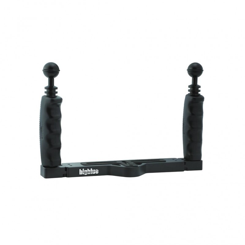 Najnowsza podstawa Big Blue z ergonomicznymi uchwytami. Posiada regulowaną podstawę, którą możemy rozszerzyć z 200 do 300 mm. Uchwyty zakończone standardowymi 1" mocowaniami kulkowymi do przymocowania dodatkowych ramion przedłużających i oświetlenia.
