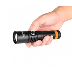 Latarka nurkowa foto OrcaTorch D710V MK2 (2300 lm) to nowa generacja lamp wideo 3-kolorowych – białe, czerwone i UV. Zapewnia ultra szeroki kąt 120°, ładowanie USB-C w akumulatorze 21700, tytanowy przełącznik boczny i wodoszczelność IPX8 do 150 m. Idealna do filmowania i fotografii podwodnej z efektami fluorescencji.