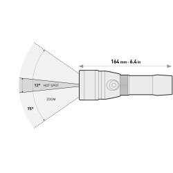 Wiązka światła może być regulowana przez nurka podczas nurkowania przez proste obrócenie głowicy latarki. Intensywność światła można regulować za pomocą poręcznego mechanicznego przełącznika wielofunkcyjnego ze wskaźnikiem naładowania baterii, który jest bardzo przydatny, by utrzymać stan baterii pod kontrolą nawet podczas nurkowania. Intuicyjny i bezpieczny system zapobiega przenikaniu wody do wnętrza latarki. Jednym dotknięciem możesz ustawić cztery różne funkcje latarki: pełna moc, około 40% mocy, miganie i wyłączenie. Nowe, elektroniczne zabezpieczenie w postaci podwójnego przycisku zapobiega przypadkowemu włączeniu się latarki.