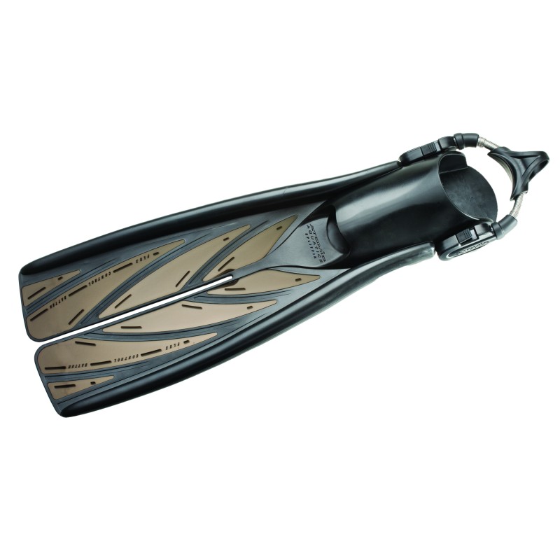 3. Rozcięcie - specjalne rozcięcie daje płetwą efekt piór podwójnych, które wyginają się i załamują przy najlżejszym ruchu nogami. Dzięki temu płetwa prześlizguje się po wodzie z oporem dużo mniejszym. W trakcie długich dystansów wytwarza się specjalny ciąg w kierunku płynięcia, który wyraźnie wspomaga siłę napędu.