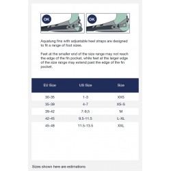Nadaje się na gołą stopę lub w skarpecie,regulacja napięcia paska,jedna płetwa – dwa rozmiary