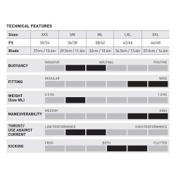 Płetwy nurkowe Avanti Pure x mają długość pióra od 27 do 34,5 cm w zależności od rozmiaru.