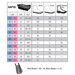 -Dostępny w kolorze czarnym w 5 rozmiarach (XS, S, M z ostrzami Midi; L, XL z ostrzami Maxi) i zawiera narzędzie wielofunkcyjne i 2 zestawy płytek blokujących, system balastowy ze stali nierdzewnej i torbę na łódź SCUBAPRO.