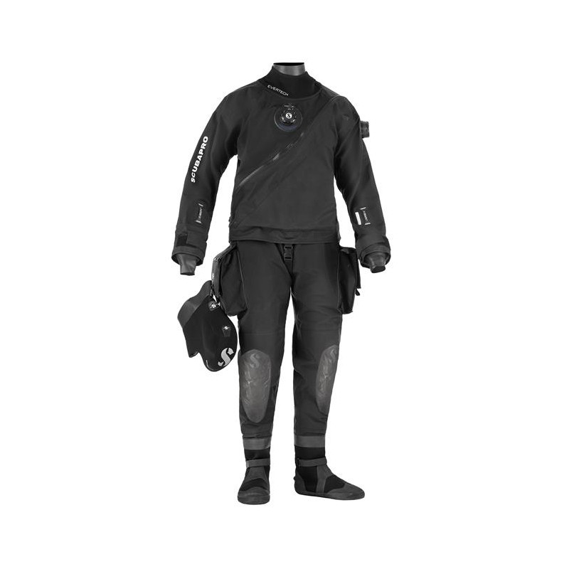 Evertech Dry Breathable to najwyższej jakości suchy skafander z trójlaminatu zaprojektowany dla zapalonych nurków. Ten suchy skafander jest najwyższej jakości od oddychającej mieszanki nylonu/PU/nylonu z trójlaminatu, zszywanych i wodoodpornych, klejonych szwów po skośny przedni wodoodporny zamek błyskawiczny oraz system uszczelnień pierścieniowych Si-Tech i zawory. Kołnierz z neoprenu utrzymuje kaptur na miejscu, zawory Si-Tech są zamontowane na zszytych i klejonych podkładkach, aby zapewnić bezproblemową kontrolę przepływu powietrza, a dołączone półsztywne buty do nurkowania mają miękkie, ale ochronne podeszwy. Duże kieszenie cargo i niebieskie szelki to jedne z cech skafandra zaprojektowanego tak, aby zapewnić ciepło, suchość i wygodę w każdych warunkach wodnych.
