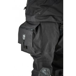 Dołączone półsztywne buty do nurkowania mają miękkie podeszwy, które poprawiają ich właściwości antypoślizgowe, a jednocześnie umożliwiają wygodne chodzenie po nierównym terenie. Buty są również wyposażone w paski na rzepy, które poprawiają dopasowanie, zapobiegając jednocześnie przedostawaniu się powietrza do stóp, a także w uchwyty pasków płetw. Dwie duże kieszenie cargo są wyposażone w D-ringi, łatwy do zobaczenia niebieski bungee, wysoce bezpieczne klapy i zapięcia na rzepy.