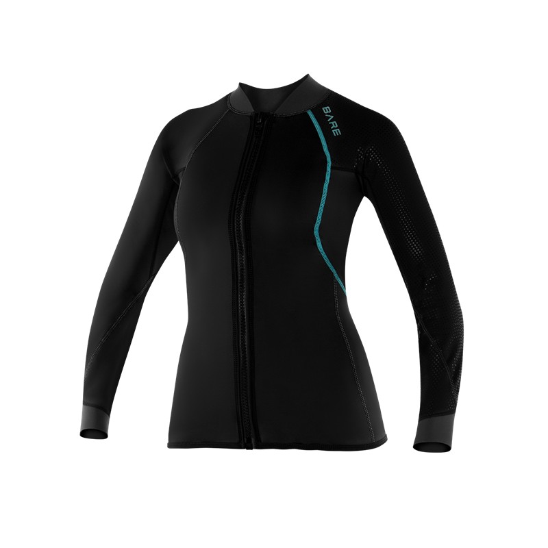 Bluza zapinana na zamek ExoWear zapewnia maksymalną ochronę termiczną, posiada neutralną pływalność i jest przeznaczona do użytku w wielu dyscyplinach sportowych. Zamontowany zamek z przodu zapewnia ciepło i ochronę, można również regulować zamkiem temperaturę ciała. Bluzę można użyć samodzielnie lub z innymi elementami Exowear takimi jak długie spodnie lub krótkie spodenki. OMNIRED ™ to 13 termo-reaktywnych minerałów osadzonych w tkaninie Exowear. Minerały przekształcają emitowane ciepło organizmu w energię cieplną i odbijają je z powrotem do ciała, dzięki czemu Twój organizm może utrzymać optymalną temperaturę i uniknąć wychłodzenia w wodzie. 3-warstwowa tkanina chroni przed najtrudniejszymi warunkami dzięki materiałom hydrofobowym, wiatroodpornym, oddychającym, szybkoschnącym, odprowadzającym wilgoć i antybakteryjnym. Swoboda ruchów jest niezbędna w wodzie więc zastosowaliśmy 4-Way Stretch ExoWear, który zapewnia większą elastyczność i oddychalność niż 2-Way Stretch w podobnych kombinezonach.