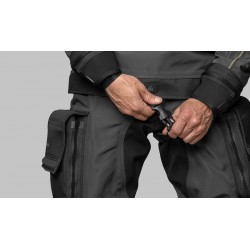 Zamek błyskawiczny YKK/BDM – Długi, zakrzywiony zamek umiejscowiony na ramieniu ułatwia zakładanie skafandra, poprawiając jednocześnie komfort i swobodę ruchów górnej części ciała.