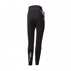 Dół damskiego kombinezonu do pływania jest częścią naszej linii odzieży o wysokiej wydajności wodnej. Skład tkaniny obejmuje 100% poliester w przypadku czarnej podszewki i 100% nylon w przypadku podszewki z wzorem, o grubości 2,0 mm. Środkowa warstwa tkaniny wykonana jest ze spienionego kauczuku chloroprenowego.
