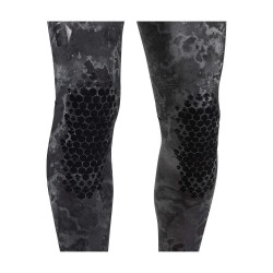 Spodnie męskie Explorer Camo Black 30 freediving wetsuit wykonane są z 3 mm neoprenu. Wewnętrzna strona spodni wykonana jest z neoprenu o otwartych komórkach, natomiast zewnętrzna strona jest szara i pokryta kamuflażowym nadrukiem przedstawiającym dno morskie.