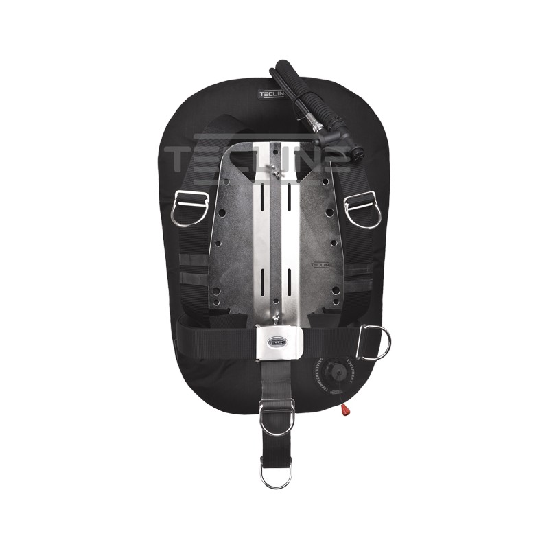 Zestaw składa się ze skrzydła Donut 17, uprzęży DIR na płycie stalowej 3 mm regulowanej wraz z pasami mocującymi do butli pojedynczej oraz dwóch kieszeni balastowych.