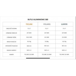 Butla aluminiowa 11,1 litra, 207 bar, Tecline, szczotkowana (S080) z zaworem pojedynczym.