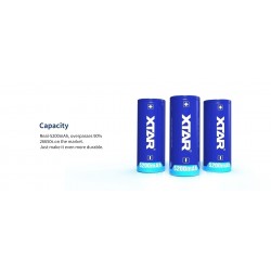 Akumulator XTAR 26650 5200mAh z zabezpieczeniem PCM, przed rozładowaniem, przeładowaniem, przeciążeniem i zwarciem. O napięciu 3,7V. Akumulator wykonany w technologi litowo-jonowej. Zapewnia większą gęstość energii. Specjalnie zaprojektowany do latarek.
