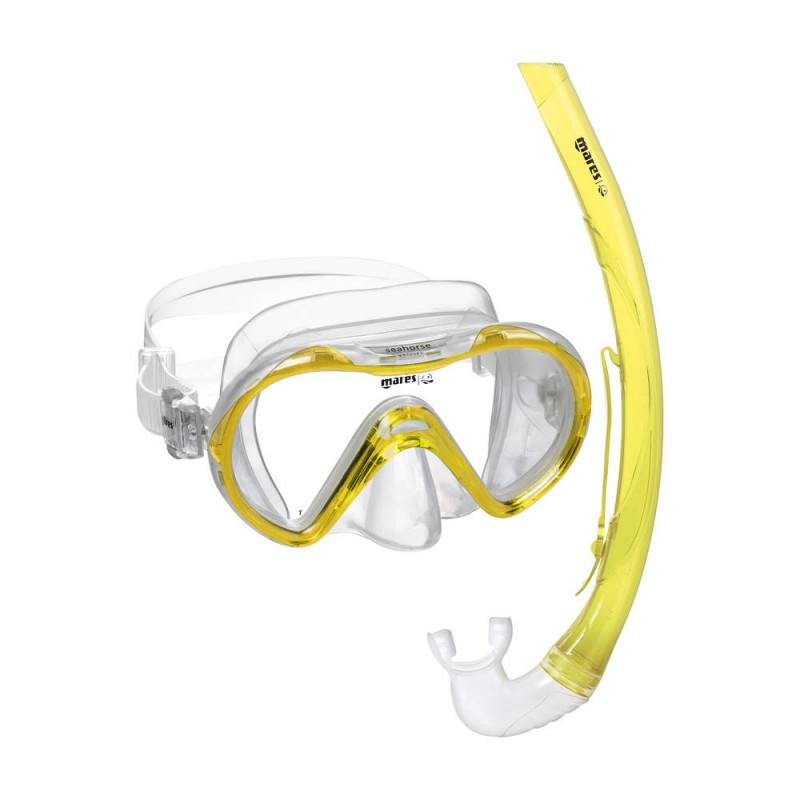 Combo Seahorse to maska i fajka do nurkowania dla dzieci w wieku 8-14 lat, które lubią bezpiecznie nurkować i dobrze się bawić. W zestawie znajduje się silikonowa maska Seahorse z łatwymi w użyciu klamrami regulacyjnymi na twarzy. Soczewka ma szeroki promień widzenia w dół. Uchwyt na fajkę do nurkowania jest zintegrowany. Fajka do nurkowania jest wykonana z miękkiego silikonu, idealnego dla dzieci.