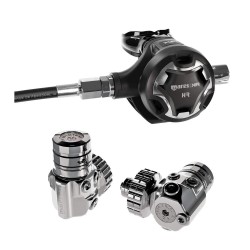 Drugie stopnie HR są wyposażone w regulowany system komfortu oddychania do spersonalizowanej kontroli wysiłku oddechowego, podczas gdy system VAD z „zakrzywionym” obejściem zapewnia naturalny, wysoki przepływ gazu na każdej głębokości. Obudowa z technopolimeru łączy w sobie prostotę, wysoką wydajność i cechy ultralekkie, uzupełnione o PAD (pneumatycznie wspomagana konstrukcja) dla dodatkowego komfortu podczas inhalacji. Nadwymiarowy przycisk opróżniania, zaprojektowany do łatwego użycia w grubych rękawicach, oraz wytrzymały gumowy wąż LP przyczyniają się do niezawodności i odporności zestawu.